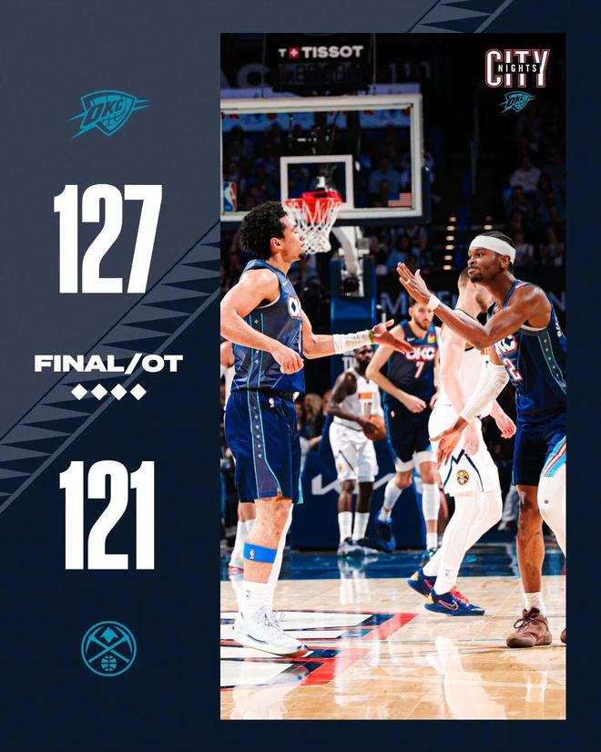 常规赛,雷霆加时127-121战胜掘金。